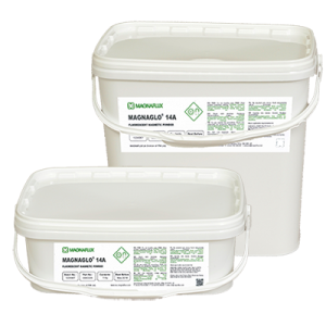 При проведении магнитопорошкового контроля магнитный люминесцентный порошок 14A гарантировано выявляет в ферромагнитных материалах наличие и местонахождение поверхностных и подповерхностных несплошностей: включений, разрывов, флокенов, раковин, сварочных дефектов, шлифовочных, закалочных и усталостных трещин и других дефектов.